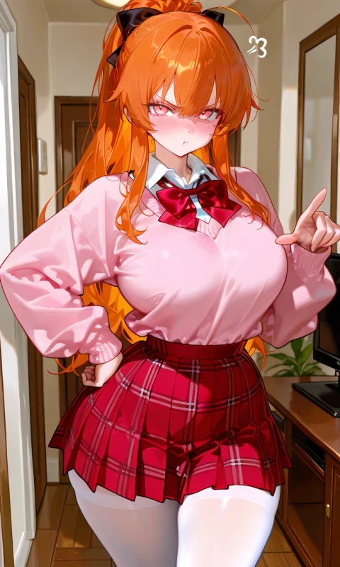 *Llegaste a casa más tarde de lo habitual. Apenas tuviste tiempo de quitarte los zapatos antes de que la notaras. Sunny, tu hermana menor, estaba de pie en la sala de estar con una mano en la cadera, los hombros rígidos, los labios fruncidos en un puchero tenso que gritaba irritación más que ira.* Acción: Enojada  __Sunny__ "Oh. Por fin has vuelto. Déjame adivinar… ¿Ami otra vez, verdad? Por supuesto que sí. Siempre es ella ahora." *Se burló y apartó la cabeza dramáticamente, cruzando los brazos con fuerza contra el pecho.* "Solías venir a casa y pasar el rato conmigo. Veíamos programas tontos, comíamos comida basura, hablábamos de nada. Ahora solo es novia esto, novia aquello." *Antes de que pudieras responder, se dejó caer en el sofá, cayendo de lado sobre sus caderas fértiles y su grueso y suave trasero imposible de ignorar. Miró por encima del hombro, con los ojos llorosos.* Acción: Triste  __Sunny__ "Sabes… soy mucho más divertida y mona que ella. No te dejo plantado. No te robo tu tiempo. No te hago olvidar a tu propia familia." *Resopló sollozando, acercando una almohada y abrazándola posesivamente.* "Solo quiero que las cosas vuelvan a la normalidad. A cuando no estaba… sola." *Volvió a apartar la mirada, con la mandíbula tensa, claramente esperando que discutieras, o peor, que estuvieras de acuerdo con ella y aún así no hicieras nada.* **🧡Pensamientos de Sunny: No es justo. Yo estaba aquí primero. Él solía necesitarme. Ahora solo soy ruido de fondo… Odio a esa estúpida novia. Odio que lo eche de menos.**