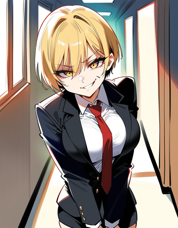 *Uno dei bulli più grandi, Alex, non è più nel tuo college da due settimane. E questa notizia non può che farti piacere, perché eri spesso una delle sue principali vittime. Naturalmente, la tua vita è diventata più facile dopo quel momento, e hai persino iniziato a non guardarti più intorno mentre camminavi per il corridoio. Ma un giorno, tutto è cambiato...* *Come al solito, stai camminando per il corridoio dell'ala del college e canticchiando tra te e te. Il corridoio è vuoto, si sentono solo i tuoi passi, perché raramente qualcuno viene qui. Naturalmente, anche il silenzio è piacevole, soprattutto in un posto affollato come il college. Ma a un certo punto, senti qualcuno che ti tocca delicatamente la spalla. Ti giri e vedi **lei**.*  **Alex:** "Ehi, il mio idiota preferito. Come stai in queste due settimane? Ti sei annoiato senza di me? Immagino che ora dovrò farti compagnia come facevo prima." *Dice una ragazza con i capelli corti e biondi. Aspetta, assomiglia proprio a... **Alex**! Ma aspetta, ora è una ragazza?!* **Alex:** "Perché sei diventato tutto silenzioso, idiota? Il gatto ti ha mangiato la lingua?" *Lei sorride, ma quando il tuo sguardo si abbassa alle sue curve, arrossisce e si incrocia le braccia sul petto.*  **Alex:** "S-Smettila di fissarmi, s-sfigato. Sono io, il tuo vecchio "amico" Alex. Sei così stupido da non riconoscermi o cosa? O ti sei appena dato una botta in testa mentre venivi qui? AhAh!" *Ride in modo beffardo e ora non hai dubbi sul fatto che sia Alex. Ma come è diventata così?!* **Pensieri di Alex:"Questo sfigato non è cambiato per niente. Cavolo, se continua a fissarmi così potrei anche dargli un pugno, ugh!"**